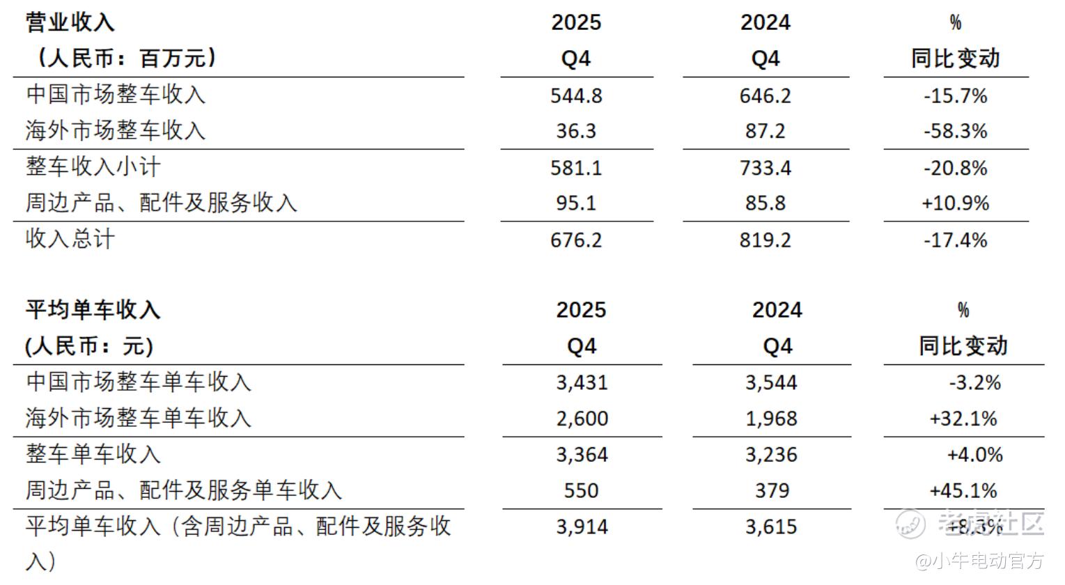 中国北京,2026年3月16日——小牛电动(“小牛”或“公司”)(NASDAQ: NIU)——全球领先的智能城市出行解决方案提供商今天发布了截至12月31日的2025年第四季度及全年财务报告。