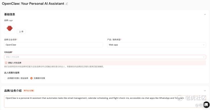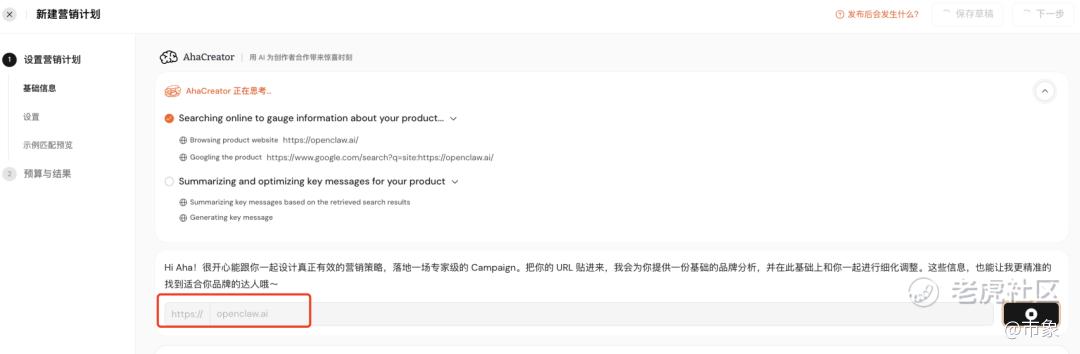 而在AhaCreator平台,品牌负担大幅减轻。只需在Campaign创建环节提交产品链接。AI 就会先根据你提交的链接,分析识别出你的竞品、卖点、受众人群是什么( 内容支持品牌增删改)。 而这些内容又会用于后续达人的精准匹配,进一步检索真正适合推进合作的强相关达人。