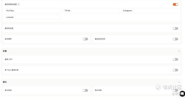 除此之外,AhaCreator 还新增了更细的合作条件设置能力,以进一步过滤不符合条件的达人,如: