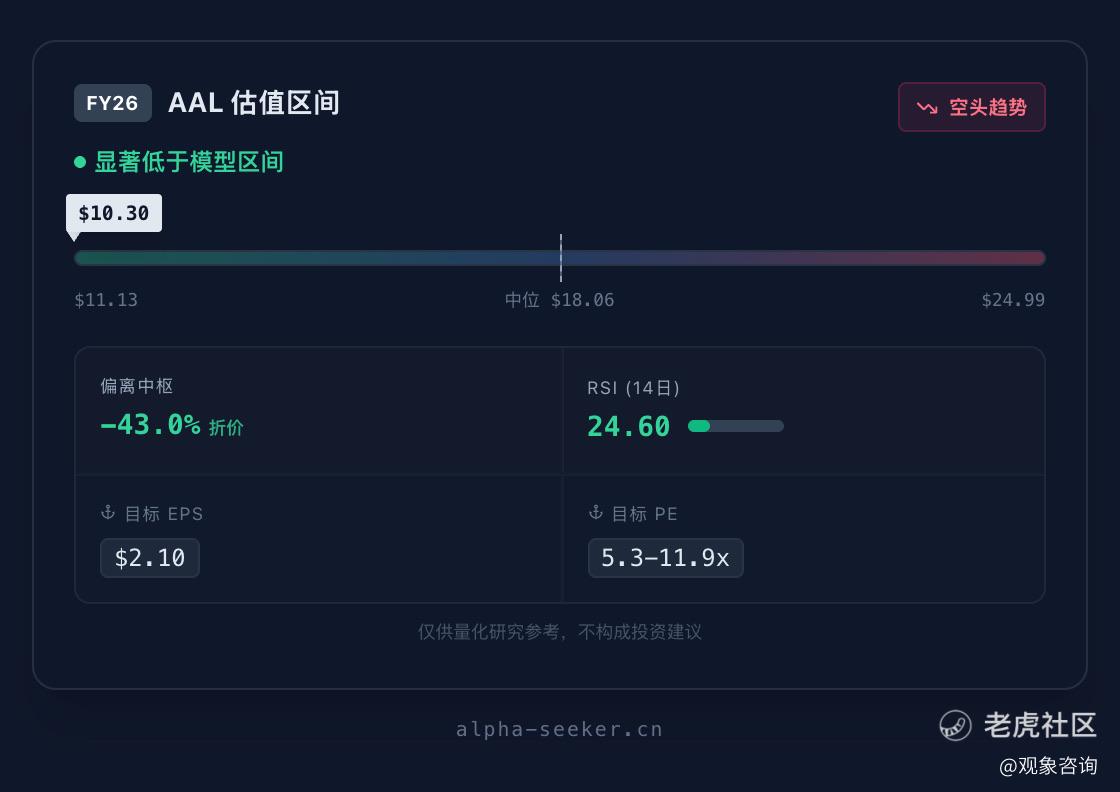 ▸ AAL $10.30 |区间下沿以下 6%