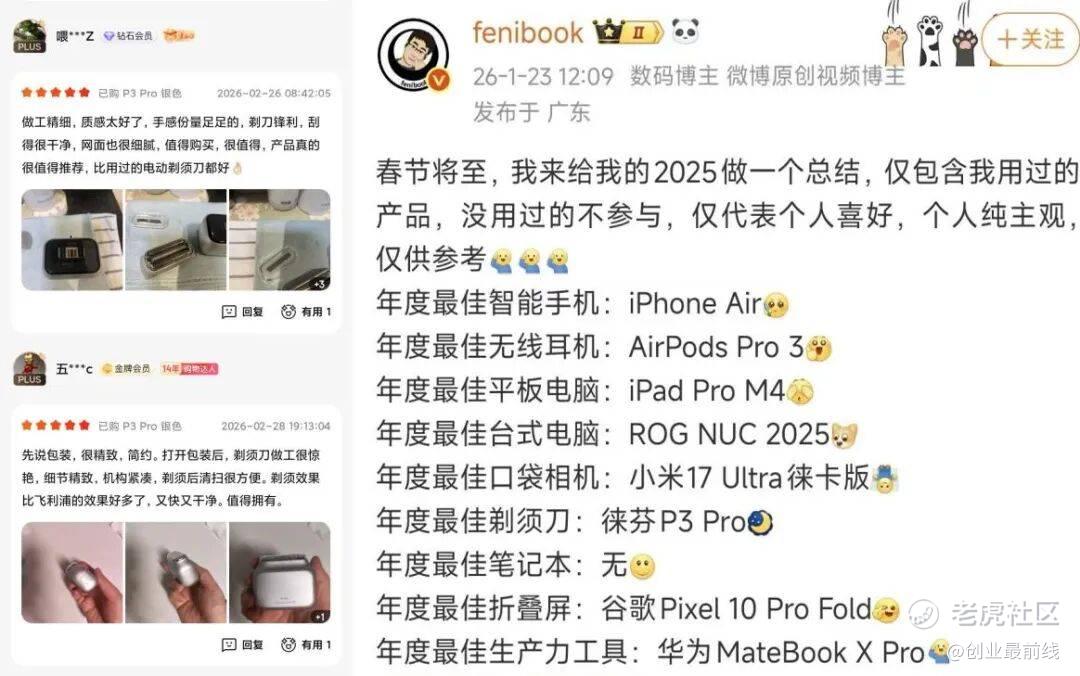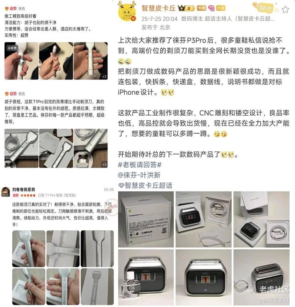 比如,徕芬P3 Pro上市后,用户的评价就呈现“一边倒”趋势,“没见过这么好看的外壳,全金属的,第一次见”“比家里传统剃须刀好用太多了,粗硬胡茬一遍就能剃干净”“完全超出预期,双电机动力很足”。