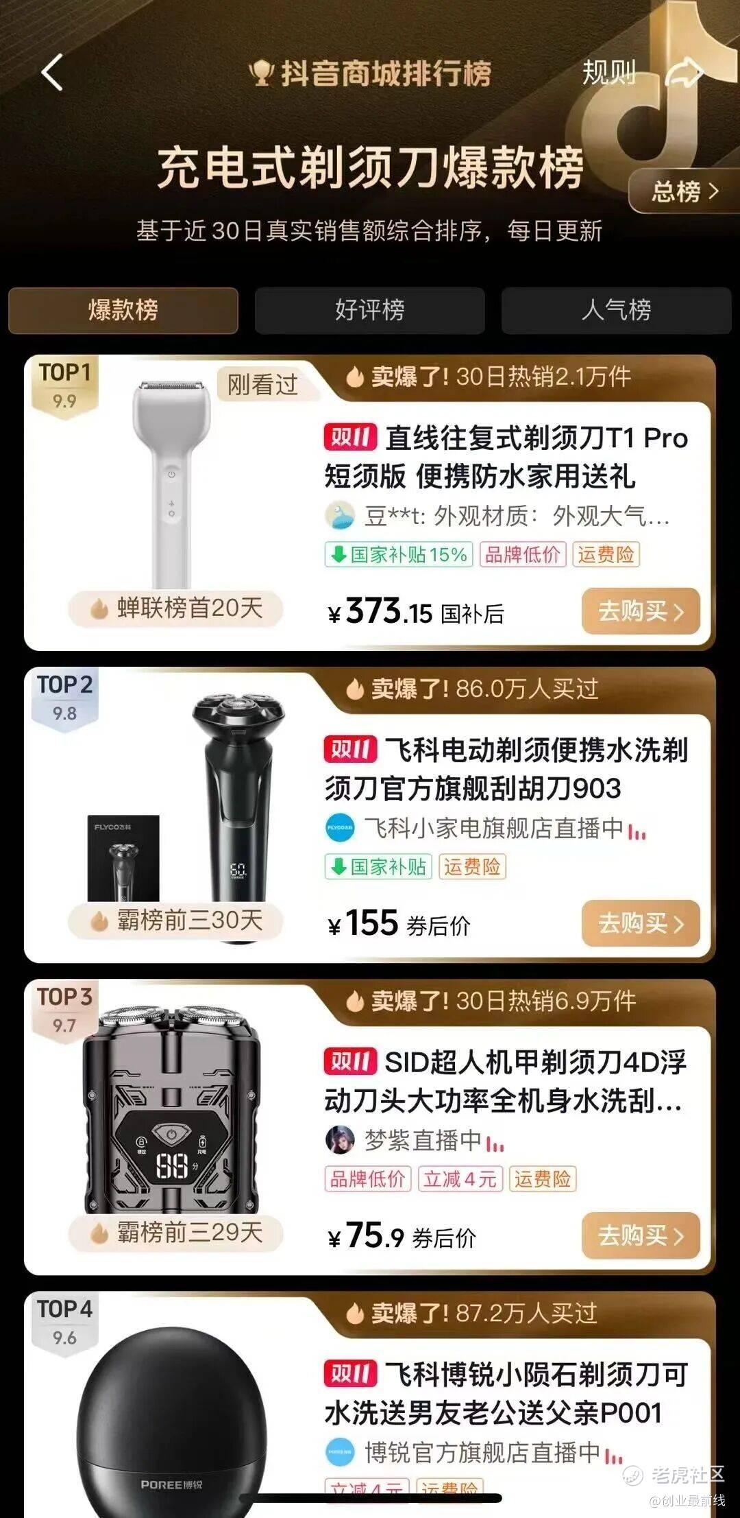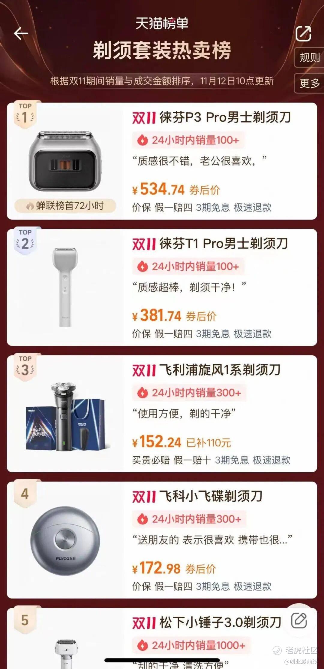 徕芬剃须刀也在用户和博主们的口碑支撑下,一路冲上国产中高端销量第一的“宝座”。