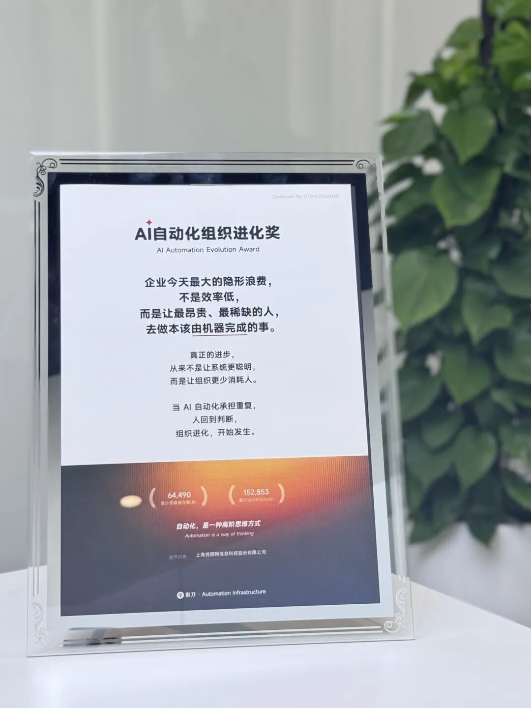 找钢网集团荣获影刀2025年度“AI自动化组织进化奖”