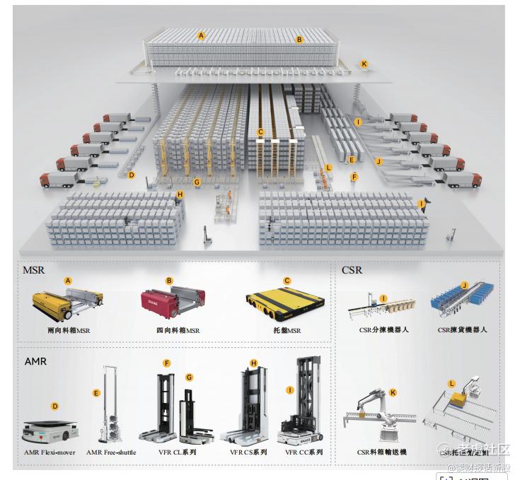 输送分拣机器人(CSR):用于高效分拣和配送,具备灵活运输与分拣能力。