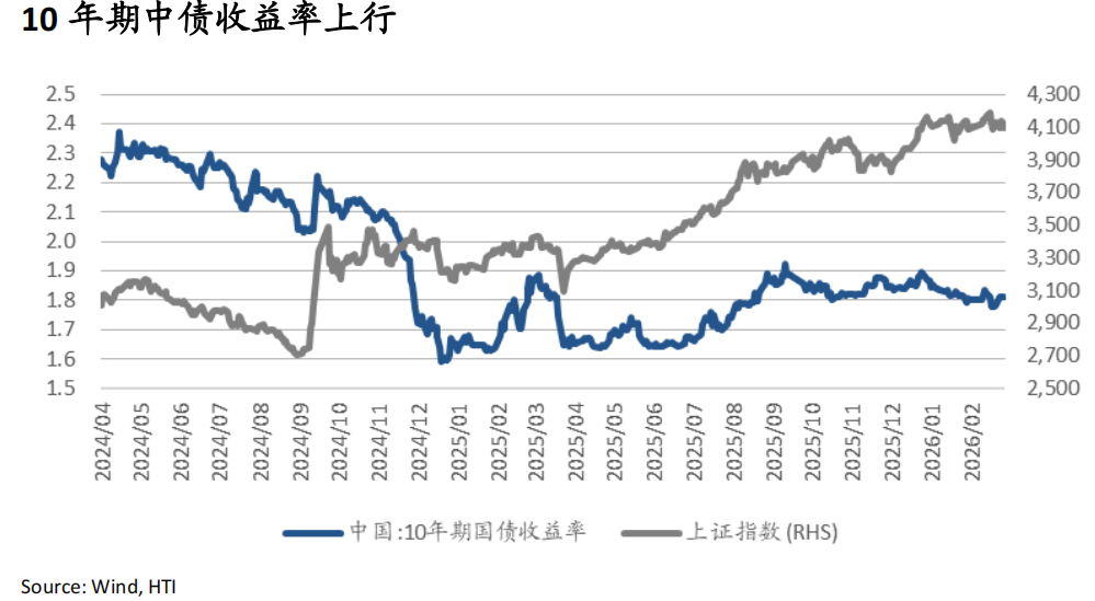 受通胀担忧升温影响,10年期美债收益率继续大幅上行14.2bp至4.27%。中国10年期国债收益率上升1.58bp至1.809%。