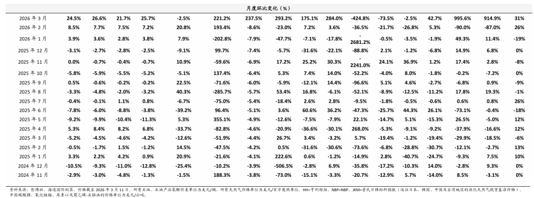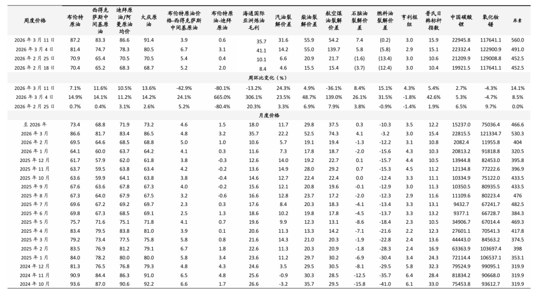 短期价格趋势:受地缘政治风险溢价和航运瓶颈的推动,原油价格预计将在短期内回升至每桶100美元以上。冲突将不可避免地导致2026年全球石油供应总量减少。在冲突后时期,海湾产油国可能会寻求增加产量,但这将受到政策协调和运营限制的制约。同时,高油价水平将抑制全球石油消费,导致今年需求同步下降。