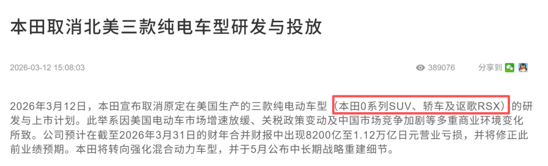 第一部分,北美市场的“天价学费”。本田这次最狠的决定,就是直接砍掉了在北美研发的3款核心纯电车型。为什么砍?因为北美电动车市场突然“变天”了,美国政策风向大转,电动车需求不到此前预期的一半,渗透率一度跌回个位数。