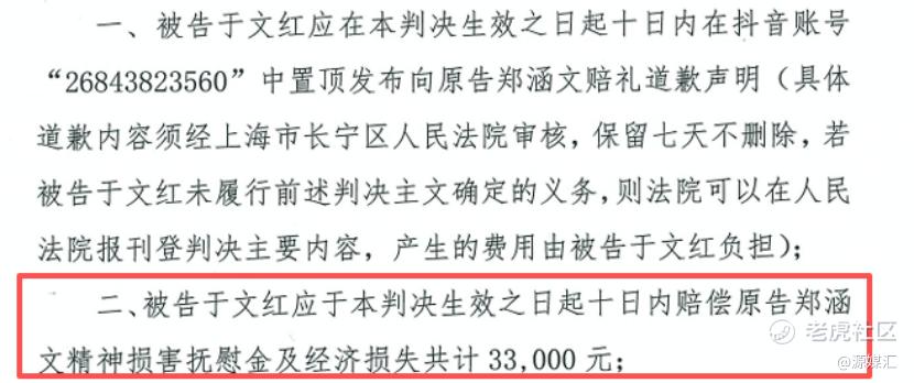 上海市长宁区法院经严谨审理后,作出了公正的判决:判令于文红在其抖音实名认证账号置顶发布经法院审核的赔礼道歉声明,且保留七日不得删除;同时赔偿郑涵文精神损害抚慰金及经济损失共计33000元。