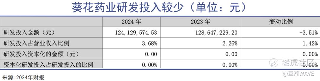 与之相对应的,是当期研发投入仅1.3亿元,不到收入的3%。这也是所有注重营销的企业的一个共同特征,葵花药业也没能免俗。