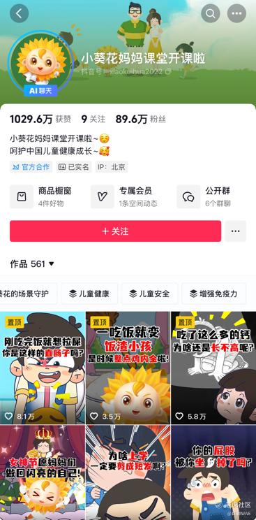 “儿童+营销”成为葵花药业开拓市场的利器。早在2007年,葵花药业就创办了“小葵花妈妈课堂”的节目,据说该节目由关一亲自操盘,分享关于儿童健康以及疾病预防和治疗的知识,目前其抖音的官方账号已有近90万粉丝,并裂变出母婴、运动健康、膳食营养等等子账号和产品。可称得上是大获成功。