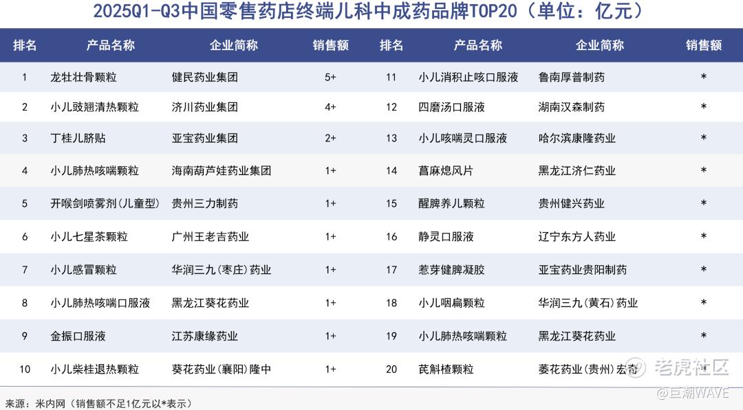 到2025年前三季度,葵花药业有4个单品跻身零售药店终端儿科中成药前20,为上榜企业中最多的一家。