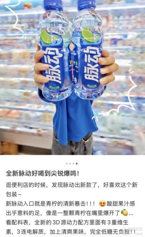 “补水的同时还能补充电解质和多种维生素,运动党锁死这瓶新脉动”