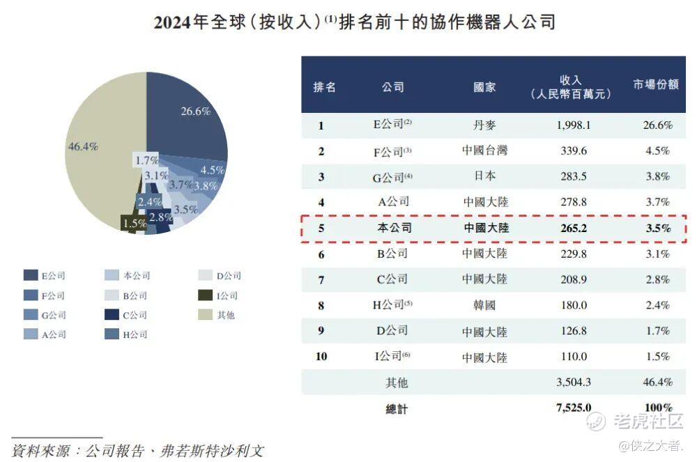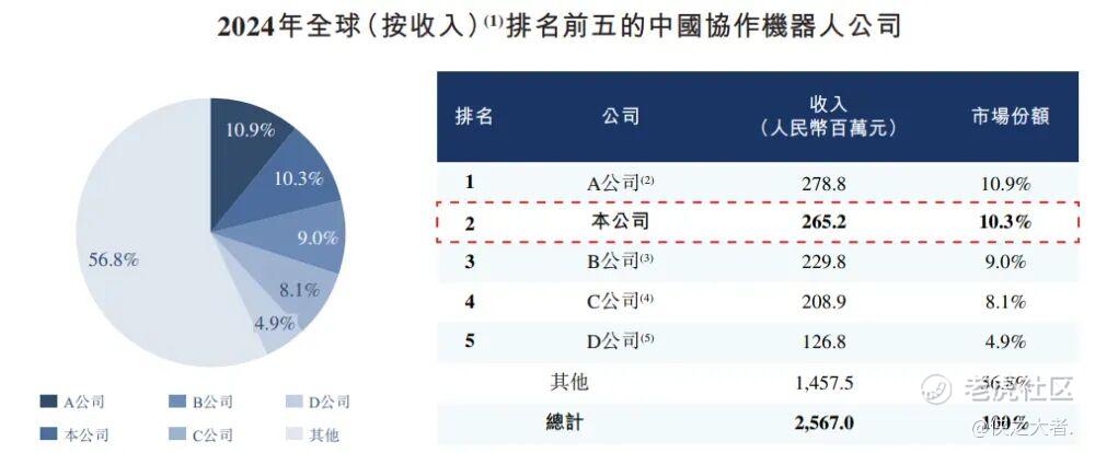 在行业领先的协作机器人公司中,公司在2024年按收入计排名第五,在全球市场的收入占有率为3.5%。