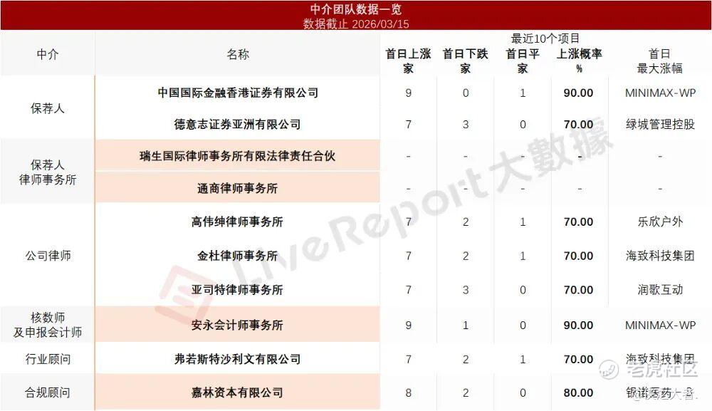 据**大数据统计,华沿机器人中介团队共计10家,其中保荐人2家,近10家保荐项目数据表现良好;公司律师共计3家,综合项目数据表现不错。整体而言中介团队历史数据表现较好。