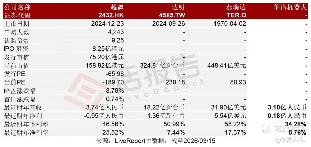 越疆(2432.HK)、达明(4585.TW)、泰瑞达(TER.O)。