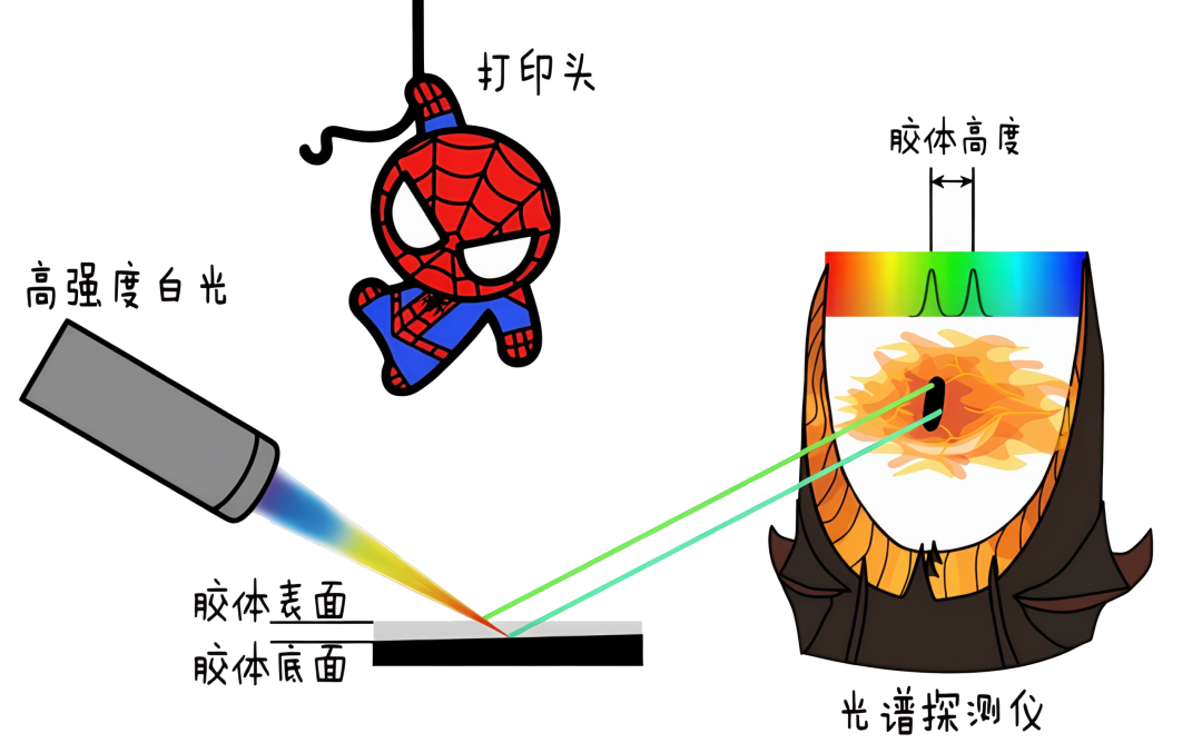 光谱共焦仪却同时发射各种波段的光,让不同颜色的光聚焦在同一个点上,由于不同光线的波长不同,只有和反射面高度契合的波长才会反射最强烈。
