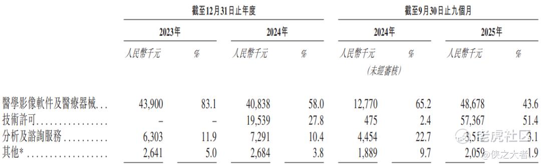 公司的收入主要来自医学影像软件及医疗设备销售,这是收入的重大部分,2023年该板块收入占比达83.1%。