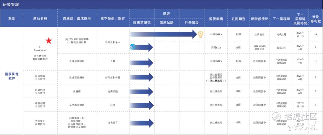 六款医学影像软件产品,包括注册阶段核心产品AI AutoVision®、一款商业化产品AutoVision®,以及四款临床前阶段候选产品;