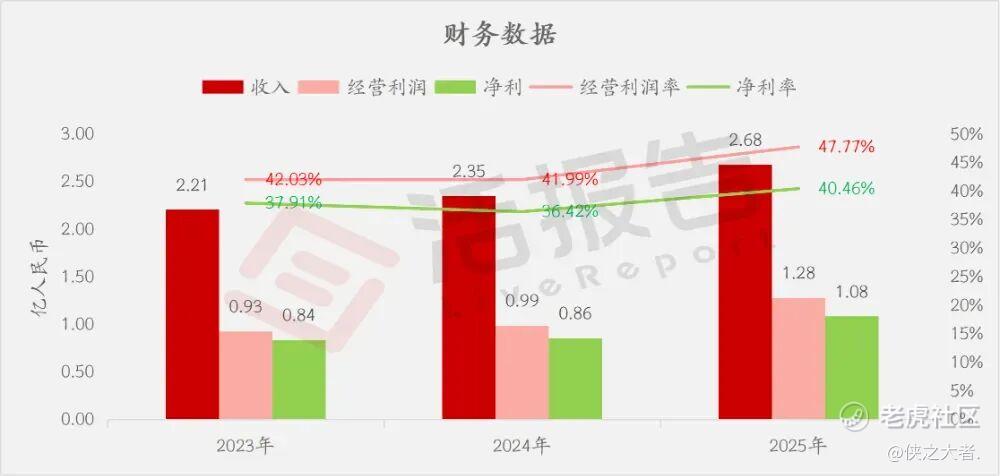 收入分别约为人民币2.21亿、2.35亿、2.68亿,2025年同比+14.02%;