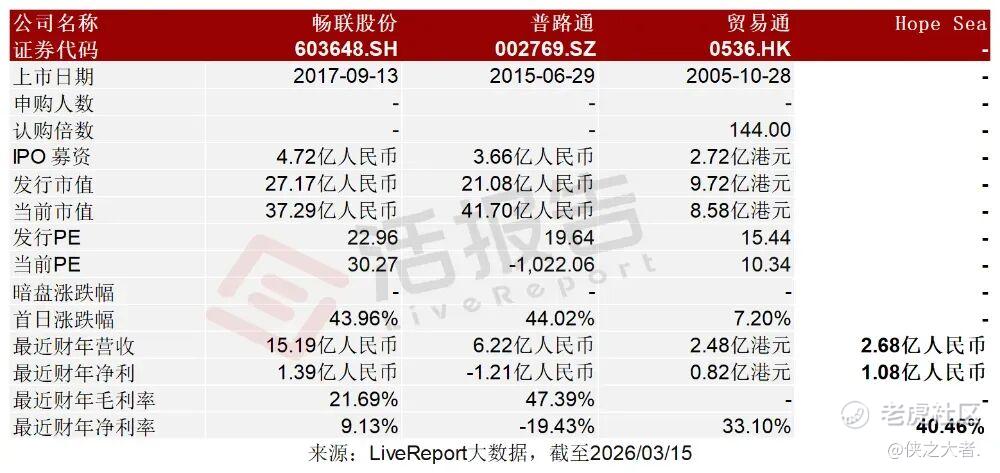 畅联股份(603648.SH)、普路通(002769.SZ)、贸易通(0536.HK)