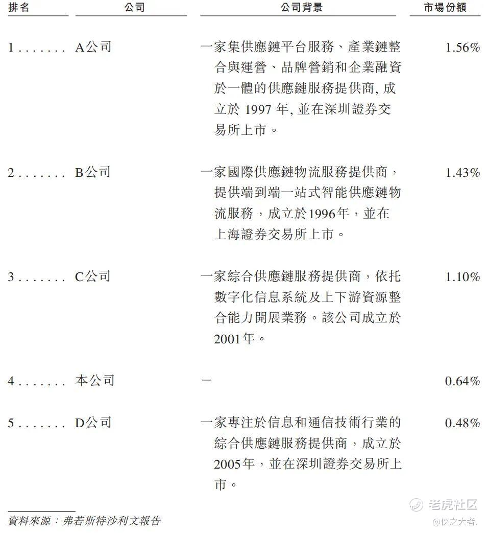 根据弗若斯特沙利文的资料,2024年中国电子产品跨境综合供应链解决方案市场规模达人民币5.6万亿元,其中前五大提供商合计市场份额占比为5.21%。2024年,公司在中国电子产品跨境供应链服务综合解决方案提供商中排名第四,市场份额占比为0.64%。