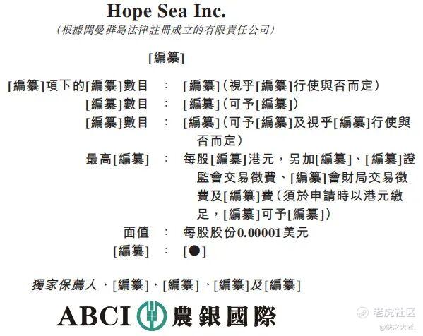 2026年3月15日,Hope Sea第2次向港交所递交招股书,拟在香港主板上市,独家保荐人为农银国际。公司曾在2025年6月16日向港交所首次递表。