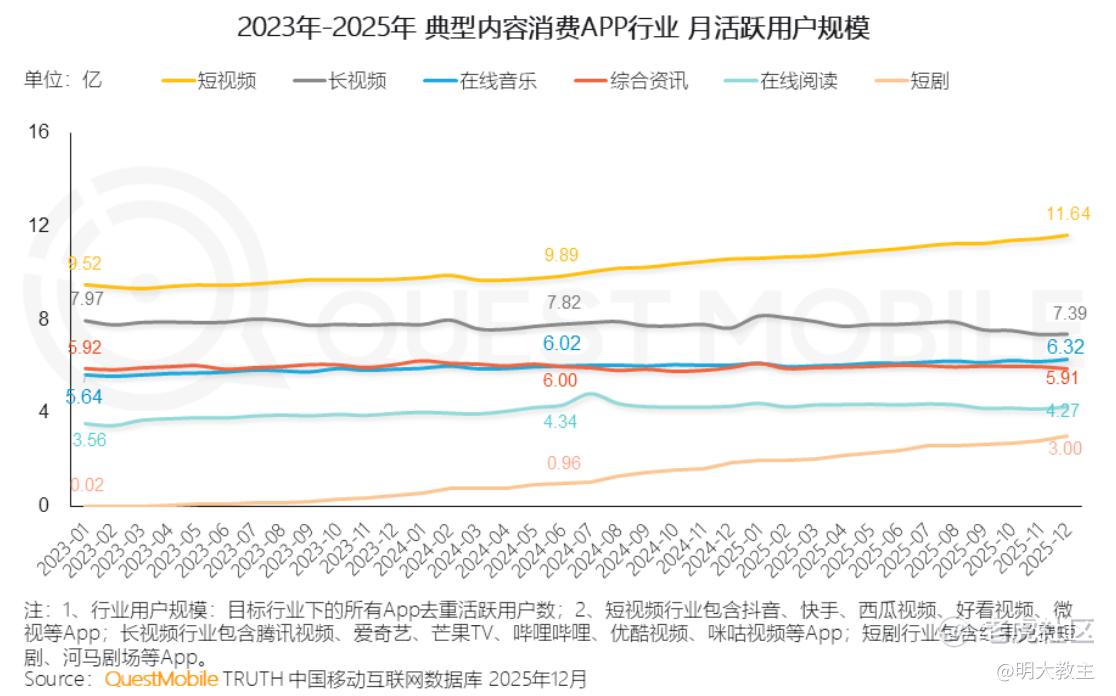 我国短剧月活用户数从2023年初的200万人增至2025年底约3亿。