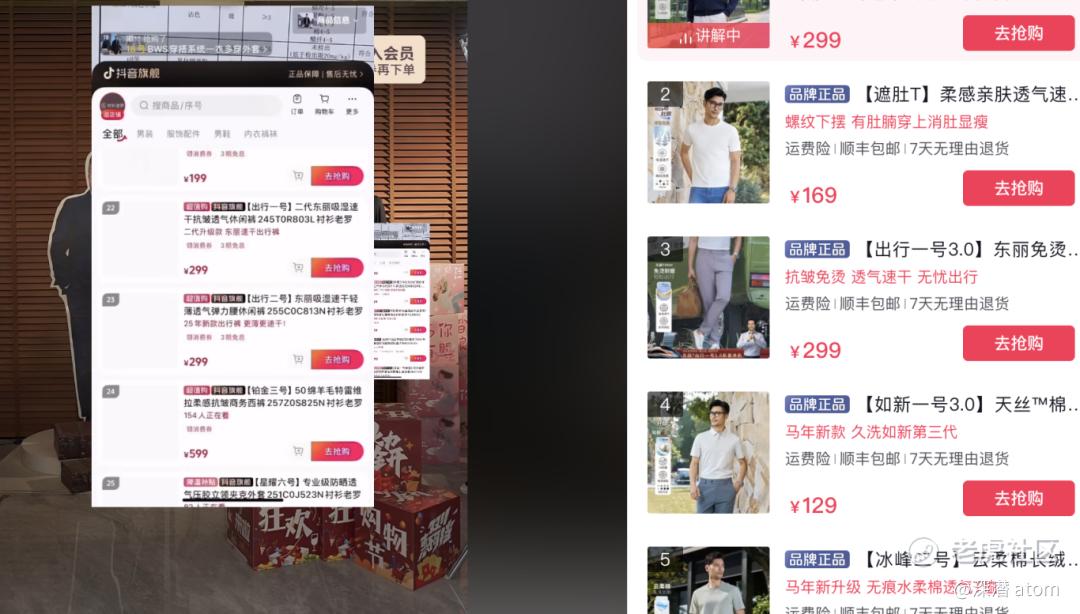最具代表性的便是服装品牌“衬衫老罗”,其从代工厂转型,最初依托抖音内容流量实现品牌冷启动,通过13秒演示短视频爆红,4小时卖出1.6万件衬衫,快速积累核心用户与品牌影响力。但在抖音费率调整、流量成本上升后,该品牌并未过度依赖内容场,而是及时布局抖音商城这一货架场景,将高客单价西装等品类转移至商城运营,实现了从“内容种草”到“货架转化”的闭环增长,成功规避了单一内容平台的经营风险。