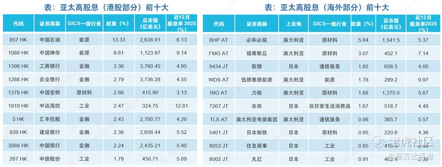 以港股部分为例,指数成分股涵盖了能源领域的中国石油 $中国石油股份(00857)$ 、中国神华 $中国神华(01088)$ ;金融领域的工商银行(1398.HK)、汇丰控股(0005.HK)等投资者耳熟能详的名字。这些企业具备长期的派息记录,是港股市场高股息策略的核心标的。
