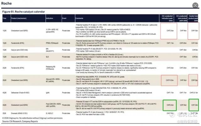 这一战略性的放弃被部分投资者质疑公司对于该分子的信心不足,但公司给出的理由有不错的逻辑支撑;以罗氏刚刚在一线HER2-/ER+ BC三期研究失利的口服SERD药物Giredestrant来看,按花旗给出的口径是:市场大小次序是早期辅助治疗(105亿瑞士法郎)>一线治疗(25亿瑞士法郎)>>二线(4亿瑞士法郎),围绕辅助治疗和1L开发或许是更聚焦的选择,