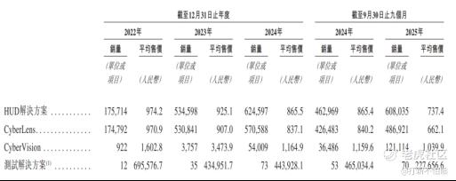 3. 产品降价压力大:随着行业放量,HUD产品售价持续下滑,其中CyberLens售价从2022年的970.9元跌至2025年的662.1元,降幅达32%;CyberVision售价2023年翻番后,2024年又暴跌近7成,2025年才勉强企稳;