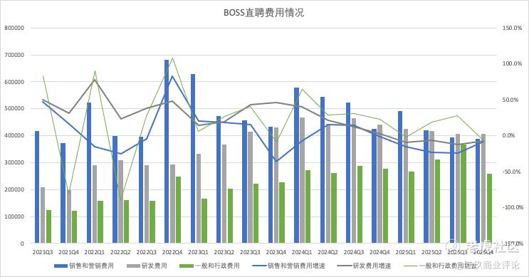 随着BOSS直聘头部效应日益凸显,平台的获客效率也在提高。数据显示,2025年第四季度,平台销售与营销费用3.89亿元,同比下降9%;2025年全年销售与营销费用16.9亿元,同比下降18%。与此同时,用户规模仍保持了强劲的增长态势。2025年全年新增完善用户近4600万人。2025年第四季度,平台平均月活跃用户数达到5800万,同比上涨10.1%。——也就是说,它花更少的钱,拉来了更多的用户。这背后,就是双边网络效应开始“帮公司省钱”的信号。