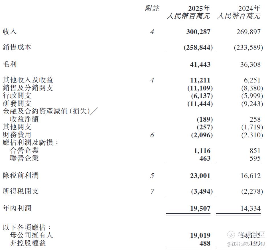 2025年奇瑞汽车毛利414.43亿元,同比增长14.1%,整体毛利率微升0.3个百分点至13.8%;年内利润195.07亿元,同比增长36.1%,净利润率从5.3%提升至6.5%。