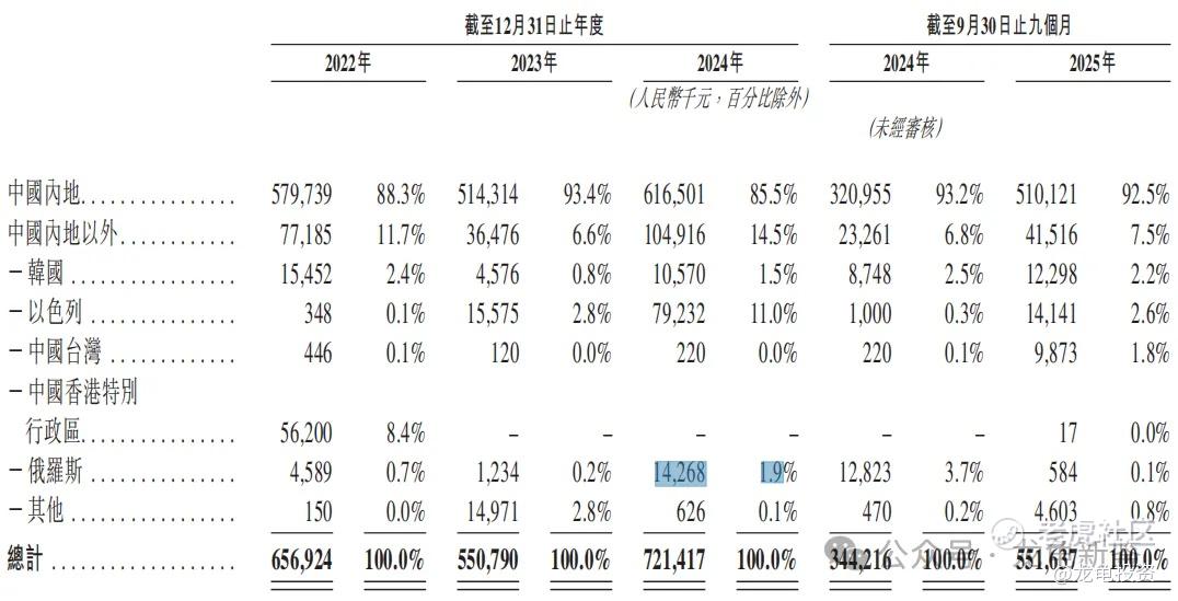 按2024年收入计,公司85.5%的营收来源内地,其次以色列占比11%,俄罗斯1.9%,韩国1.5%,截止到2025年Q3季报,内地收入占比更是达到了92.5%。