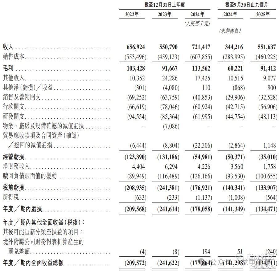 22年净亏损-2.09亿,23年净亏损-2.42亿,24年净亏损-1.77亿;25年Q3净亏损-1.35亿,较上年同期净亏损-1.41亿,净亏损略有收窄。
