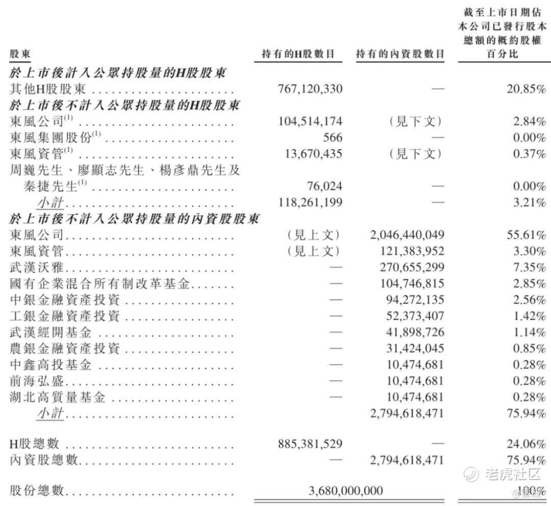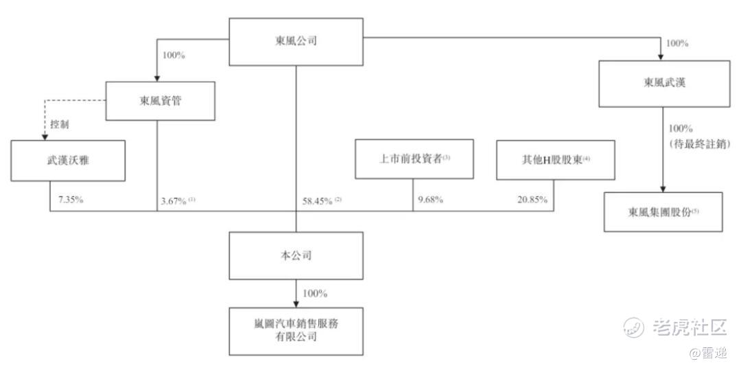 紧随上市及私有化完成后,东风公司、及其控制实体东风资管及武汉沃雅将分别直接持有岚图汽车已发行股本总额约58.45%、3.67%及7.35%。因此,上市后东风公司将有权于岚图汽车股东会上行使约69.47%的投票权。