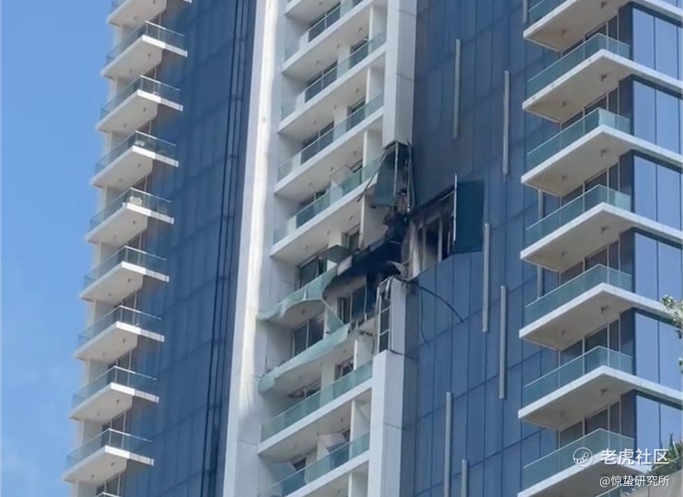 *无人机撞击大楼后留下的痕迹(视频截图,受访者提供)