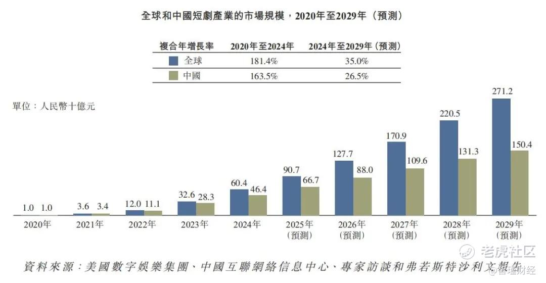 从中文在线的最新动向来看,围绕“短剧出海”是主要战略规划。根据招股书披露,全球短剧市场规模预计将从2024年的604亿元增长至2029年的2712亿元,复合年增长率达35.0%,其中海外短剧市场尚处发展初期,预计2024年至2029年复合年增长率可高达53.9%。