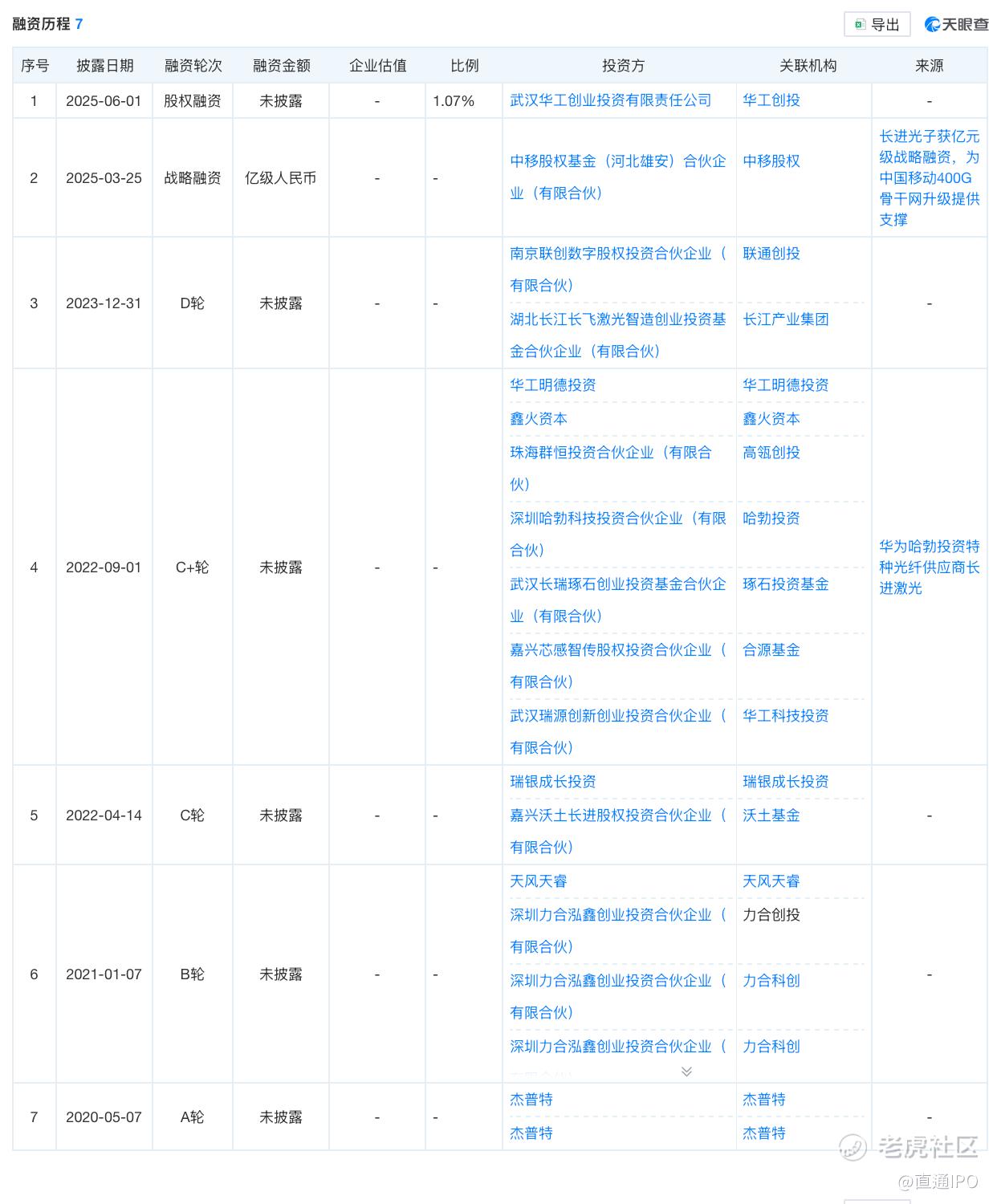天眼查App信息显示,也正是自2020年5月起,长进光子开始引进外部投资,陆续获得杰普特、天风天睿、力合创投、瑞银成长投资、沃土基金、高瓴创投、**旗下哈勃投资、中国联通旗下联通创投、长江产业集团、中国移动旗下中移基金、华工创投等机构成为股东。