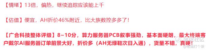 不过参考归参考,后续折价也不一定能看齐,因为广合和大族不算一类公司,只是是同PCB行业,虽然都是受益于达子的需求,大族数控这种卖上游PCB生产设备厂,从赚米的角度看做PCB产品的公司更强!