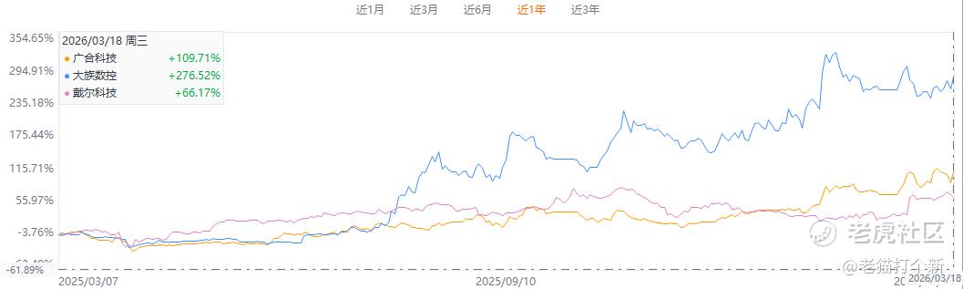 从行情上看,近一年涨幅还是大族数控+276%遥遥领先,但后面不一定!
