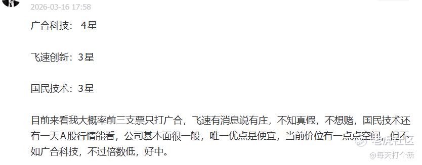 广合科技也是我们这一批主打的票评级四星,另外两个策略1.0是不打。