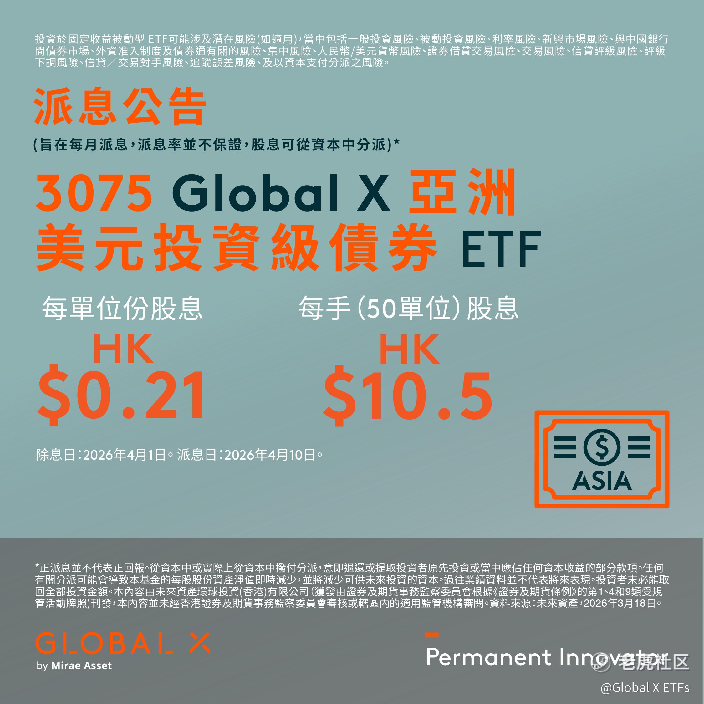 Global X 亚洲美元投资级债券ETF (3075/ 9075) $GX亚洲美债(03075)$