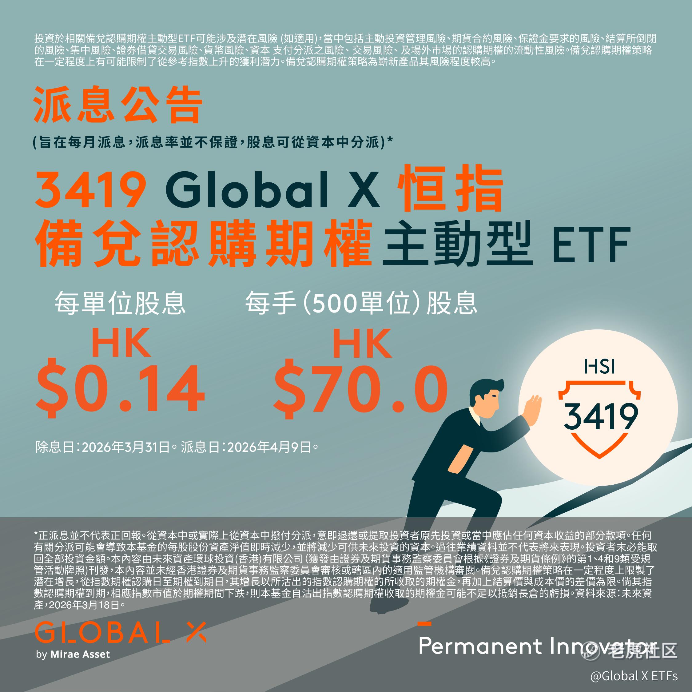 Global X 恒指备兑认购期权主动型ETF(3419) $A GX恒指备兑(03419)$