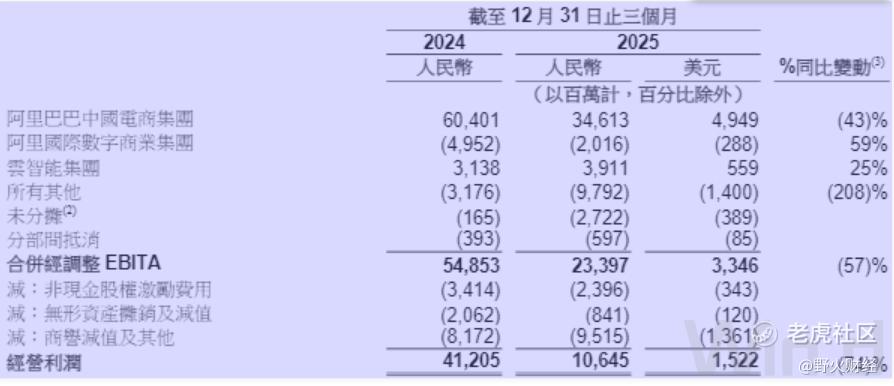 本季度,阿里经调整EBITA大约234亿元,减少57%;经营利润只有106亿元,锐减74%。