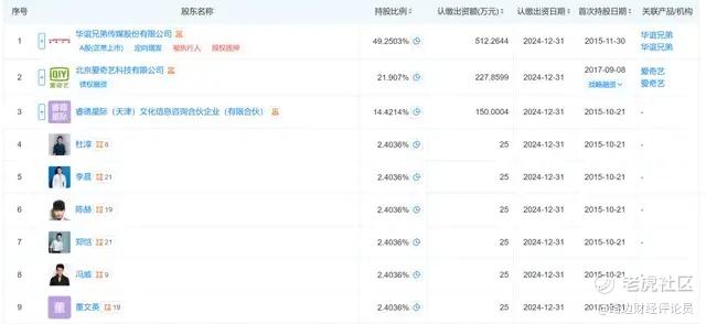 股权结构显示,爱奇艺关联公司北京爱奇艺科技有限公司持有浩瀚娱乐21.907%的股权,既是投资方,也是播出平台,同时与腾讯视频形成深度绑定。