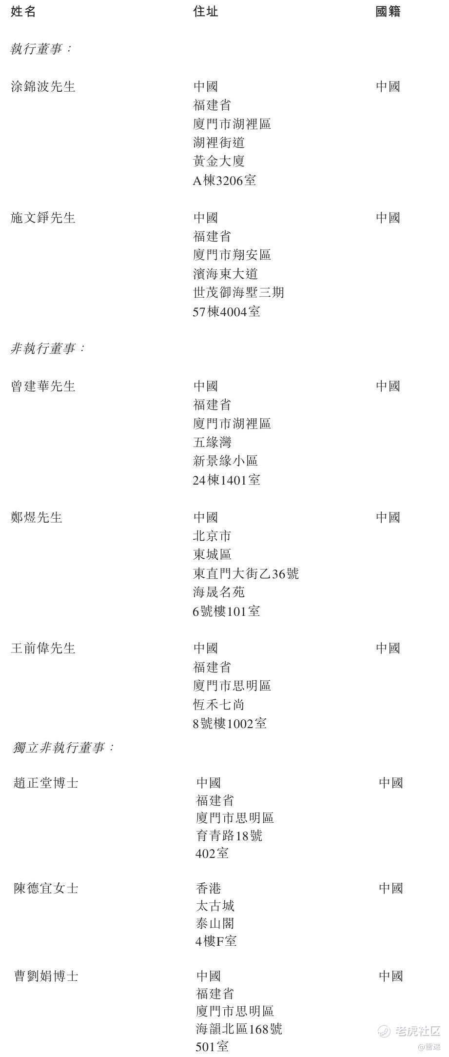 白鸽在线执行董事分别为涂锦波、施文铮;非执行董事分别为曾建华、郑煜、王前伟;独立非执行董事分别为赵正堂博士、陈德宜女士、曹刘娟博士。