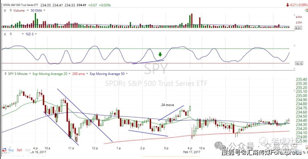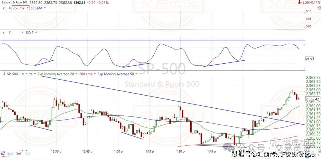 SPY 1分钟周期图上的背离信号: