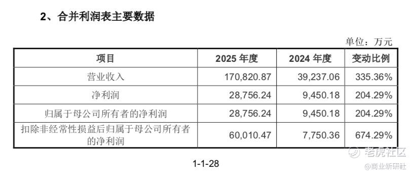 2025年度公司实现营业收入17.08亿元,同比增长335.36%;同期实现扣非后净利润6.00亿元,同比增长674.29%,主要原因为当期产品销量的快速增长。