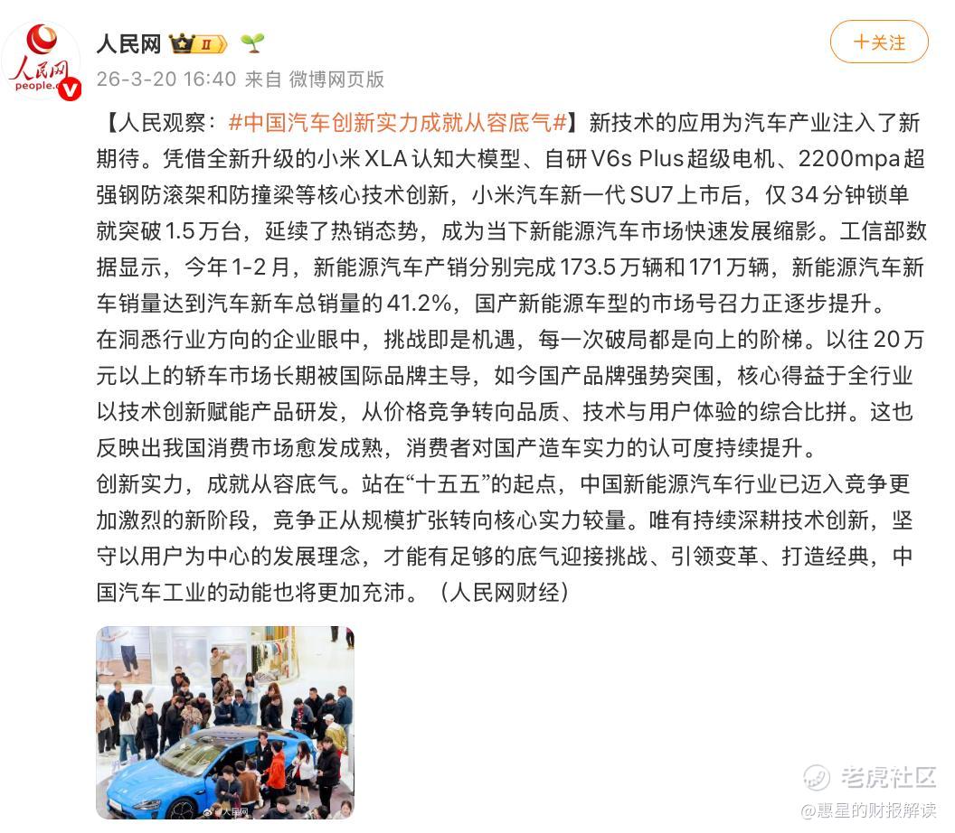 这份从容与自信,绝非凭空而来,而是小米汽车持续积累的产品硬实力与市场认可度作为坚实支撑。34 分钟 1.5 万台的锁单成绩,看似惊人却并非偶然,将其置于同级别市场中对比,更能看出这份成绩的分量:特斯拉 Model 3 上月整月销量仅 12920 辆,传统豪华品牌的标杆宝马 3 系更是不足万辆,而小米新 SU7 仅凭 34 分钟的锁单量,就轻松超越了这些老牌车型的月销基线,展现出极强的市场竞争力。回溯小米汽车的发展历程,其产品力的迭代升级有目共睹:上一代 SU7 上市 6 天锁单超 4 万、28 天突破 7.5 万,YU7 开售 18 小时锁单更是飙升至 24 万台,创下全球汽车工业的销量奇迹,持续的热销态势印证了市场对小米汽车产品的高度认可。与此同时,小米在专业赛道上的表现同样亮眼,SU7 Ultra 原型车以 6 分 22 秒 091 的成绩跻身德国纽北圈速榜总榜前三,成为中国品牌在世界级赛道的亮眼名片;新一代 SU7 更以 4264km 的成绩刷新纯电量产车 24 小时耐力纪录,用实打实的技术突破证明,中国汽车不仅能打造民用市场的爆款,更能在专业领域持续打造现象级经典,逐步迈向世界级舞台。